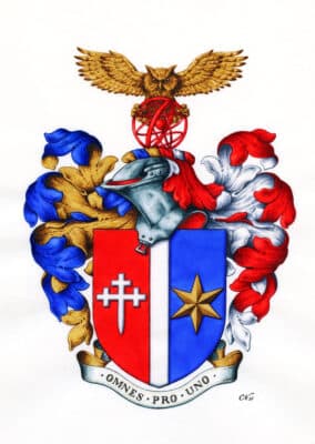 Many of the members of the Heraldry Society are armigerous, ie. they have a coat of arms. This gives us an opportunity to introduce you to the wide range of designs and styles that are used for modern, and ancient, heraldry. The arms are organised by the member’s surname.